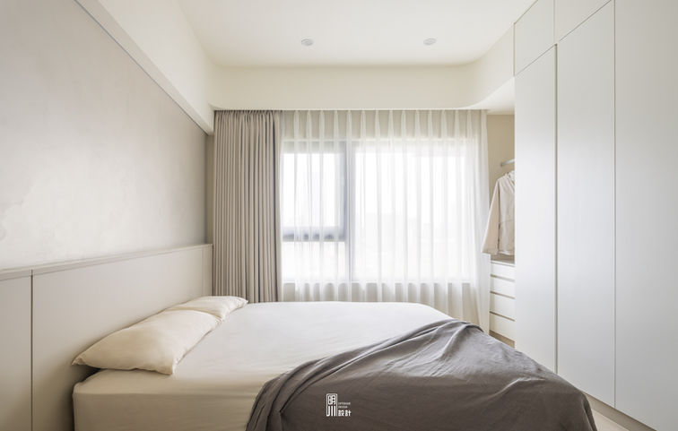 「藏光入室,柔美成家。」以韓系奶茶色為基底,融合弧線與自然光,空間在柔和與通透之間覓得平衡。玄關處的弧形屏風,不僅遮擋穿堂風,更以流暢線條迎接每位歸來的家人;客廳牆面以特殊漆描繪的金色紋理,在陽光下流動,訴說著日常的詩意。臥室延續了奶茶色的寧靜 氛圍,床頭的弧形設計與珠光牆相映成趣,充滿緩和的安定感。這裡沒有繁複的裝飾,只有對居住者生活需求的細膩理解。每一道光、每一個角落,都是對「家」這個字最深入的詮釋。